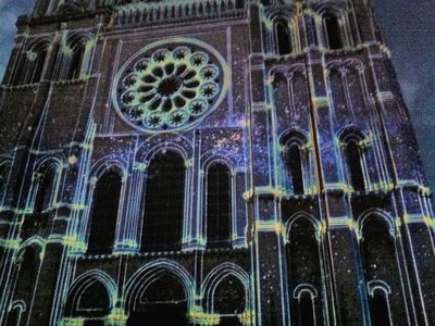 We visit Chartres particularly to see the Illuminations. It's amazing to stroll around the town viewing the different scenographies - for instance, the Royal Portal of the Cathedral presents the history of Chartres since before the coronation of Henri IV. A stunning presentation - and we stay right next door to the Cathedral! So we don't need to move far to view the fantastic spectacle!